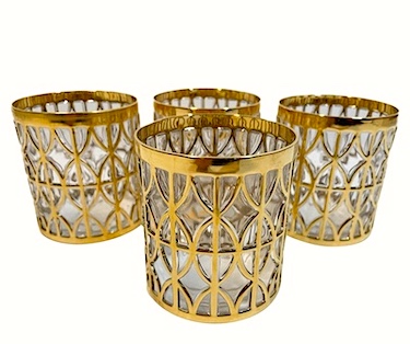 These mid-century rocks glasses were designed by Georges Briard and feature a gold scroll pattern.  Perfect for your scotch on the rocks.