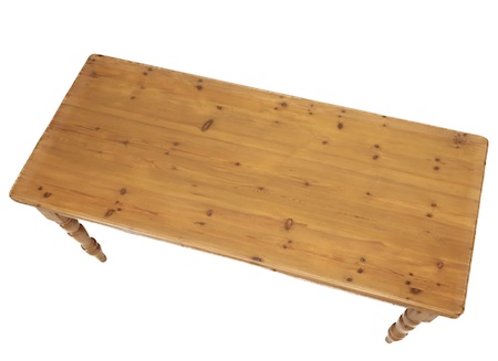 This long and narrow French pine table features beautifully turned legs. It can be used in the kitchen, as a desk or as a serving table.