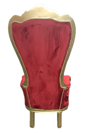 This French inspired throne features tufted back with "Diamond" buttons, hand-carved curves in gold trim and is upholstered in red velvet. Perfect for any upcoming photo shoots or the stage. Chair will require a minimum of 34 inches in doorway space.
