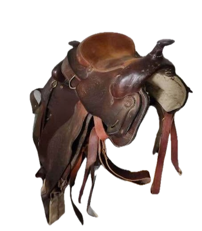 This is a vintage western saddle. Brown toned leather shapes the saddle with tooled detailing. Great as an accent decor for that western theme event. Saddle stand and blanket available.